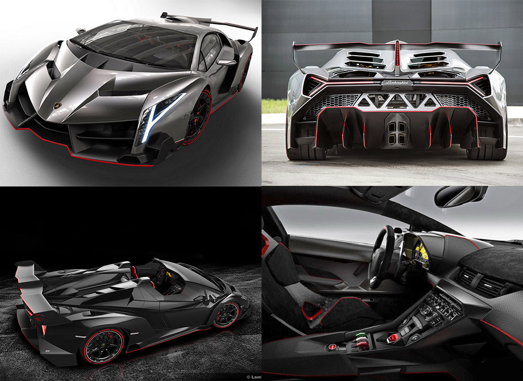Já ouviu falar na Lamborghini Veneno? Batizado de Veneno por causa de um dos touros mais fortes e agressivos das touradas espanholas, o carro - ou melhor, a nave (!), tem motor de 12 cilindros e 6.5 litros, com 760 cavalos de potência, câmbio automático de 7 marchas capaz de alcançar 355 km/h e vai de 0 a 100 km/h em 2.8s!
