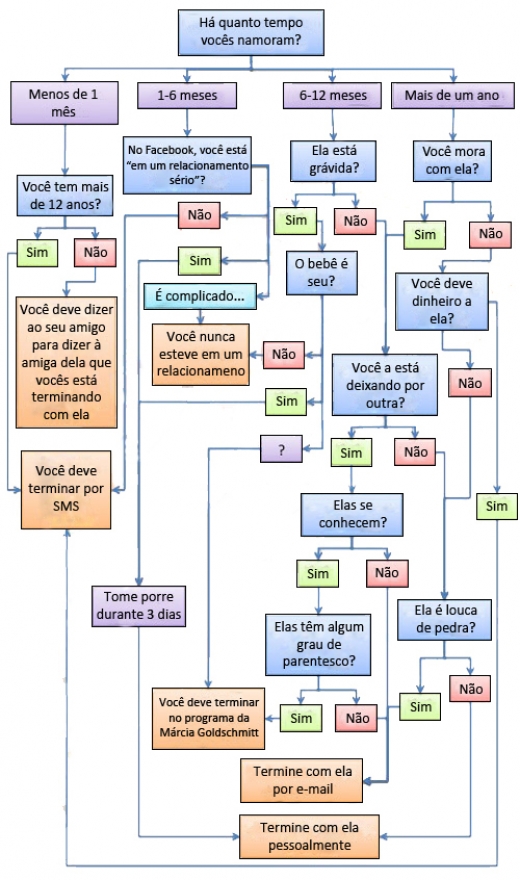 Terminar namoros é uma tarefa difícil. A situação é desconfortável, você nunca sabe como e quando fazer... São tantas dúvidas que nós (com ajuda do site HolyTaco) ajudaremos você através deste útil fluxograma.