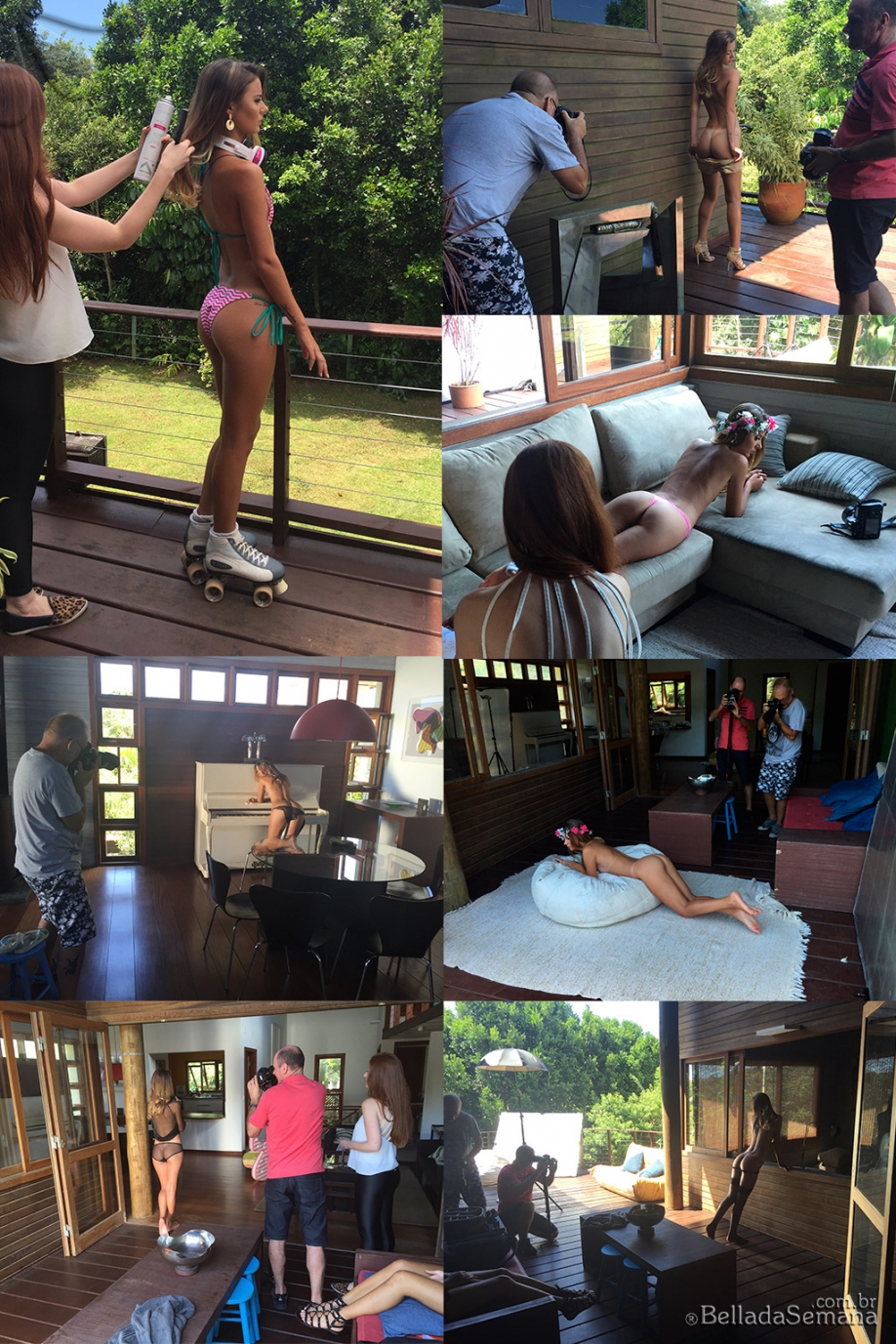Hoje é dia de transmissão de ensaio ao vivo aqui no Bella da Semana! Neste exato momento estão sendo feitas fotos de uma modelo do tipo mignon. Linda, ela chegou cedinho à locação e, depois de arrumar os cabelos e fazer a maquiagem, começou a tirar as fotos, sem nenhum pudor.