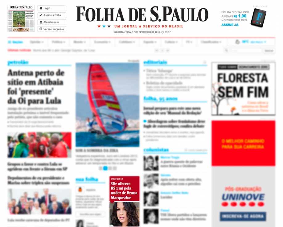 A proposta milionária foi notícia no País inteiro, inclusive no jornal Folha de S.Paulo, que publicou a nota na home do site oficial nesta quarta-feira, 17 (imagem). O cachê seria o maior pago por um ensaio nu nos últimos anos.