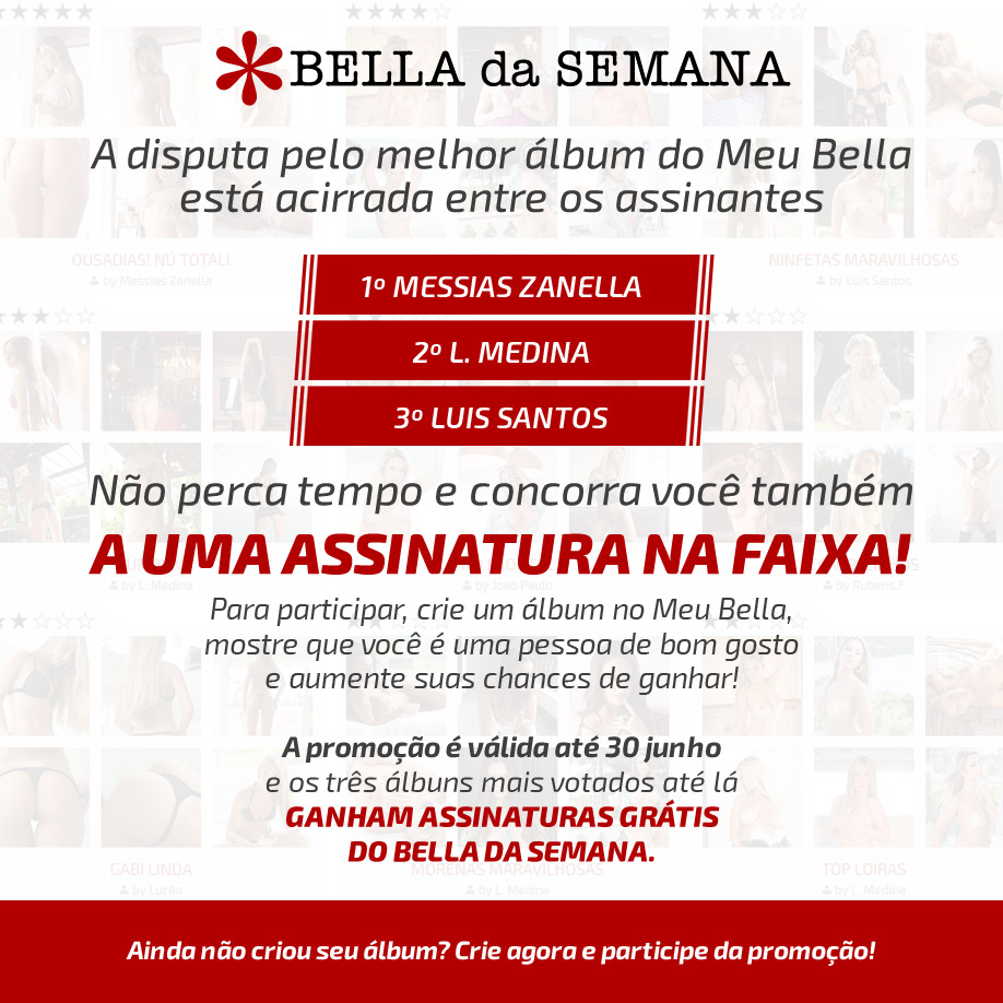 Para participar, crie um álbum no Meu Bella, mostre que você é uma pessoa de bom gosto e aumente suas chances de ganhar! A promoção é válida até 30 junho e os três álbuns mais votados até lá ganham assinaturas grátis do Bella da Semana.