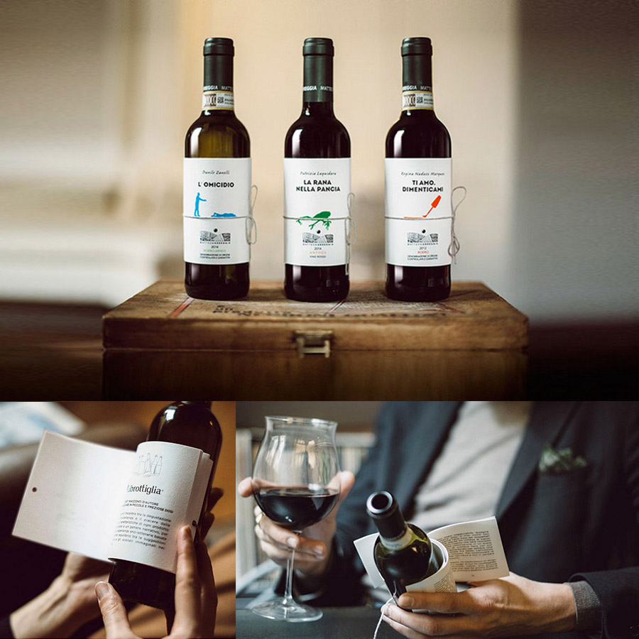 Um vinho para ser lido. Essa é a ideia da Librottiglia, uma série de vinhos criada em conjunto pela vinícola italiana Matteo Correggia e a agência de design Reverse. Junto ao rótulo de cada garrafa, há uma pequena história que foi criada com base no sabor do vinho que representa - o equilíbrio perfeito das impressões sensoriais do vinho com os cenários presentes na fábula.