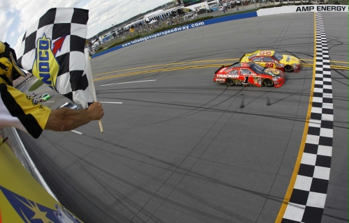 Alguns pilotos que ficaram para trás do pelotão arriscaram não parar nos boxes, o que transformou um pouco o resultado da corrida, algo também comum às corridas em Talladega. Kevin Harvick foi o grande vencedor da prova, tendo chegado apenas 11 milésimos à frente de Jamie McCurray. O terceiro colocado foi um velho conhecido, o colombiano Juan Pablo Montoya, que há alguns anos disputa as provas da Nascar entre os gordinhos americanos.