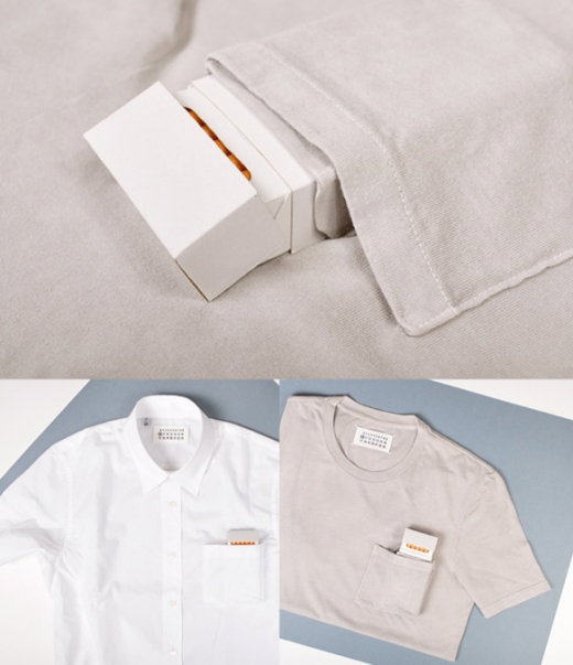 As duas peças receberam um bolso extra, dentro do seu bolso habitual, feito no tamanho exato para acomodar um maço de cigarros. Boa notícia pros fumantes, que agora podem ter um compartimento especial, do lado esquerdo do peito, para seu vício.
