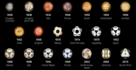 A New York Times Magazine publicou hoje uma matéria sobre a evolução das bolas de Copas do Mundo: desde a Tiento, de 1930 no Uruguai, até a polêmica Jabulani – bola da próxima Copa que começa na sexta, dia, 11, na África do Sul.