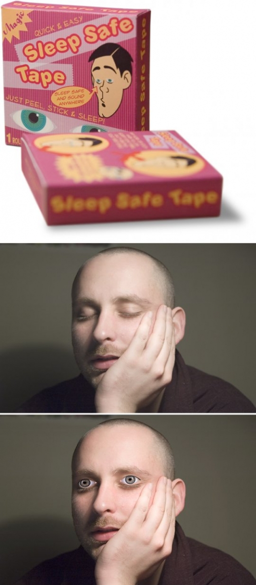 Você pode usá-la na reunião de trabalho, naquele almoço chato com a sogra e até naquela palestra que você não está nem um pouco a fim de assistir. Basta fechar os olhos, colar o adesivo sobre as pálpebras e dormir tranquilamente.