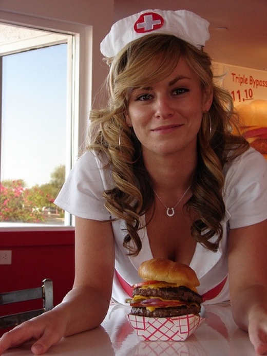 O restaurante americano Heart Attack Grill reúne tudo o que os homens gostam: hambúrgueres gordurosos e mulheres gostosas. A decoração da lanchonete lembra um hospital, as garçonetes vestem uniformes sensuais de enfermeiras e os clientes são chamados de "pacientes".