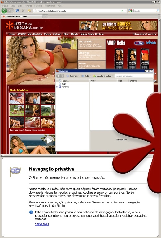 Isso significa que mesmo que a sua esposa/namorada/ficante vasculhe o seu computador atrás de “evidências”, ela não irá descobrir que você gasta mais tempo apreciando as Bellas do que dando atenção a ela...